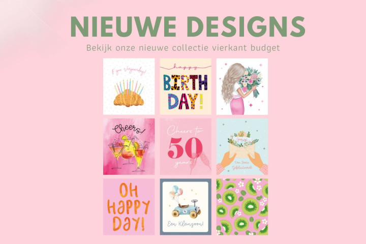 Goed nieuws! Wij zijn hartstikke enthousiast om te vertellen dat onze nieuwe collectie Vierkant Budget, Maxi en Photomail binnen is.
